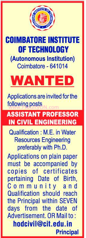 Coimbatore Institute of Technology Coimbatore Assistant ...